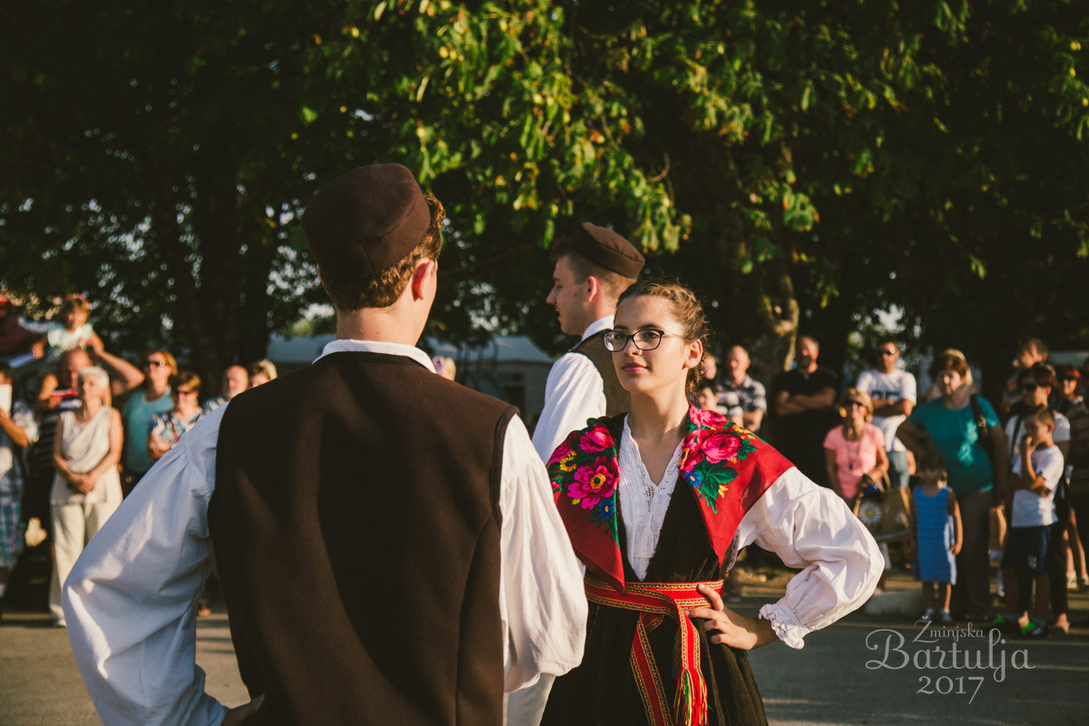 V času žminjske Bartulje so se ljudje vedno sprehajali gor in dol, se zaustavljali in pozdravljali z znanci, ki jih niso srečali še od prejšnje Bartulje. Ples je bil od nekdaj Zad kaštela (za gradom) ali Pod ložo, ki pa je danes ni več. Ples se je pričel še podnevi in zaključil pred sončnim zahodom.