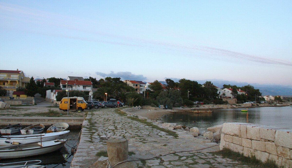 Mirno vikendaško in apartmajsko naselje v svojem borovem gozdičku skriva tudi manjši družinski kamp z okrog 15 kamping parcelami, ki so namenjene predvsem šotoristom. Kamp je zaživel leta 1981, od plaže je oddaljen le nekaj deset metrov, v njegovi neposredni bližini pa najdemo tudi mini trgovinico z najnujnejšimi živilskimi potrebščinami. Če boste hoteli opraviti kakšen večji nakup ali razvajati svoje brbončice v kakšni gostilni, se boste morali vsesti v avto in se odpeljati proti Pagu, Povljani, Novalji, ...