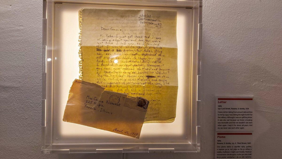 Pismo, 1969, 133 E 3rd Street, Roxana, IL 62084, ZDA. Zgodba: »To pismo sega približno v leto 1969. Noč pred svojim odhodom v vojsko in vojno ga je napisal moški, s katerim sem hodila. Pismo je spodbudno in žalostno hkrati, saj sva se oba zavedala, da je prekinitev najine veze neizbežna in da se ne bova nikoli več videla."