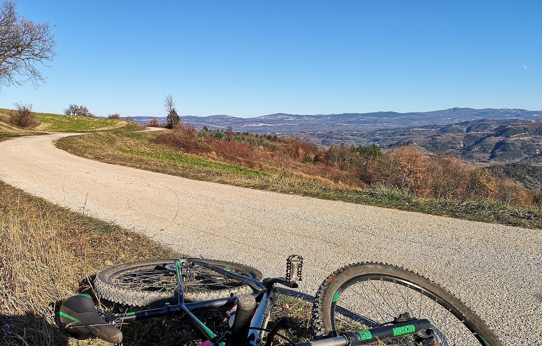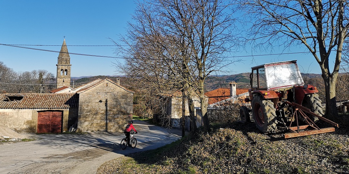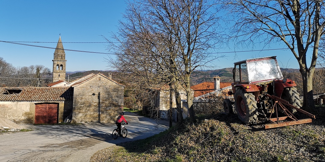 Sledi vzpon, vendar nič kaj zahteven. Zimsko sonce nas boža in pritiska na pedale. Do Grdosela ali Zelengrada, takšen je namreč prevod italijanske različice imena kraja Castelverde.