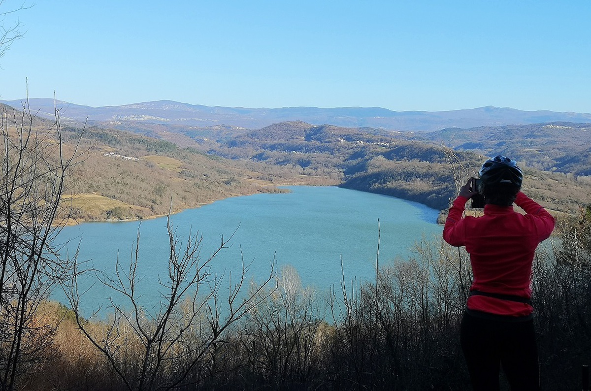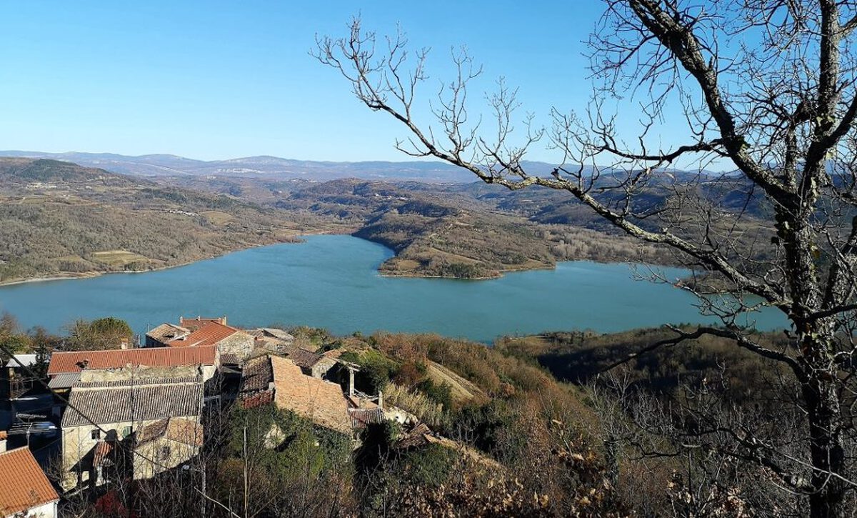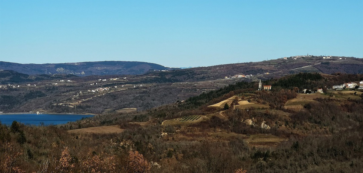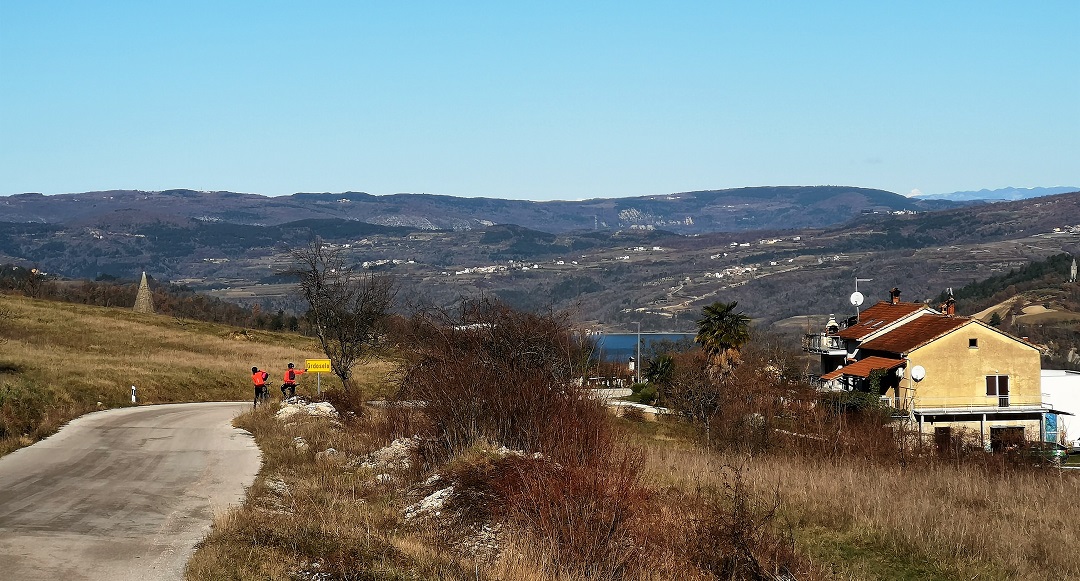 Gledamo zemljevide in na pol ugibamo, katera naselja so pred nami. Prelep je pogled na Draguć, Vrh. Vemo pa, da nas najlepši razgledi šele čakajo in to takoj, bo bomo obšle jezero Butonigo in se bomo začele vzpenjati proti vasi Ukotići.