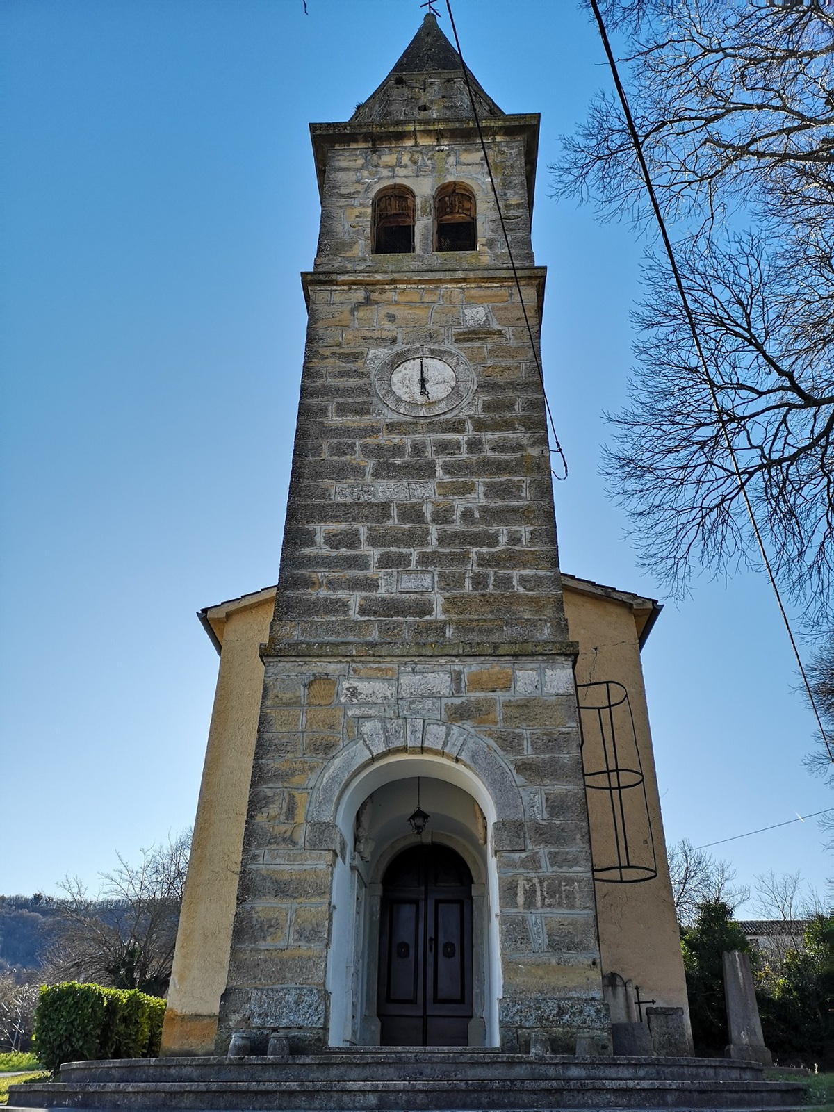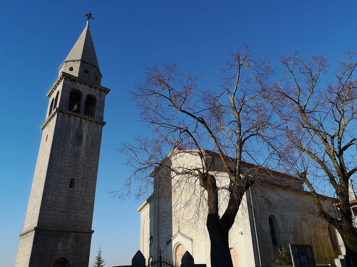 Žal cerkev, na kateri je napis v glagolici, ni bila odprta, drugič bom zagotovo prosila za ključ. Resnično bi želela videti ta spomenik hrvaške pismenosti. Glavni element je vsekakor zvonik, ki prevladuje nad krajem. Nekdanja župnijska cerkev, posvečena sv. Jakobu, se je nahajala ob starem pokopališču.
