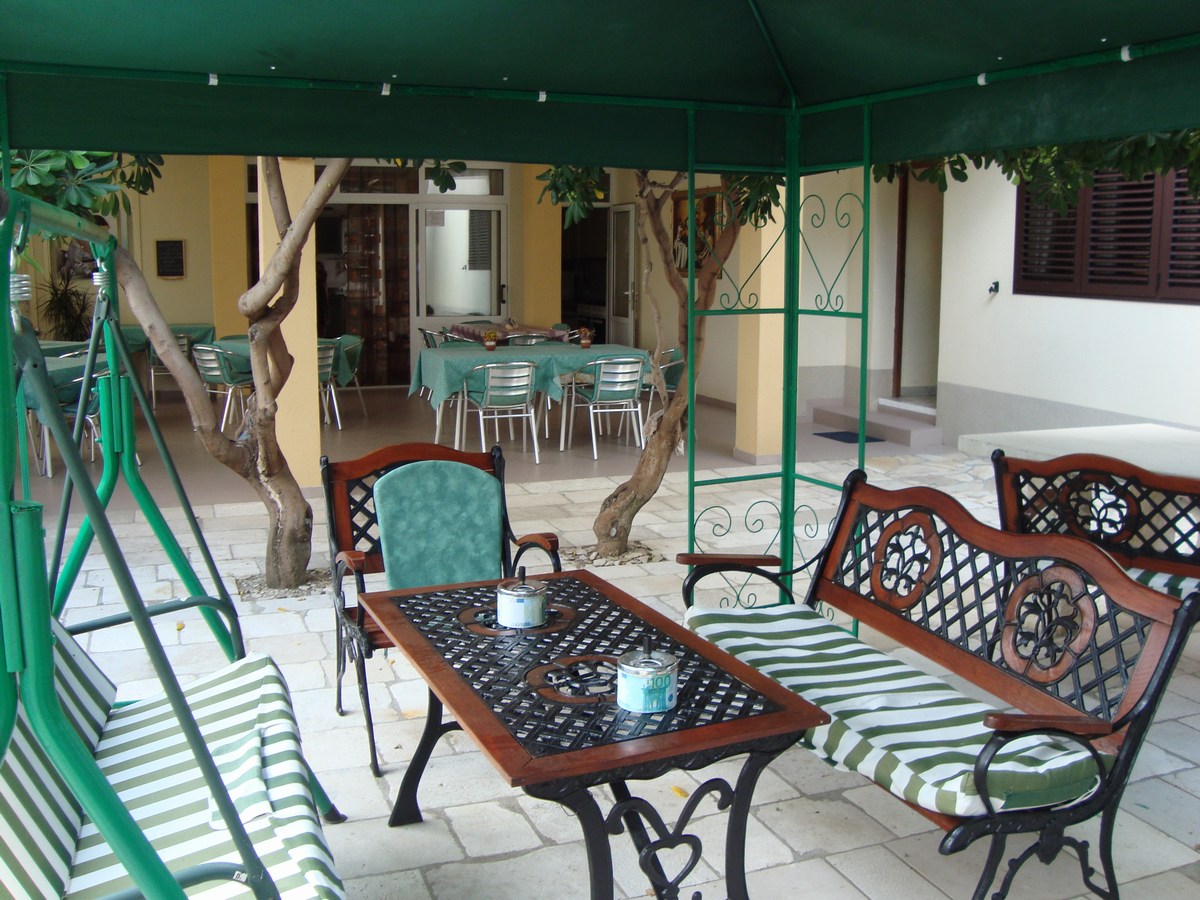 Trava je negovana, senčnice pa so poleg druženja idealne tudi za branje po kosilu. Otroci lahko uživajo na igralih, starši pa se na dopustu povsem sprostijo, saj je vrt ograjen in varen za igro.