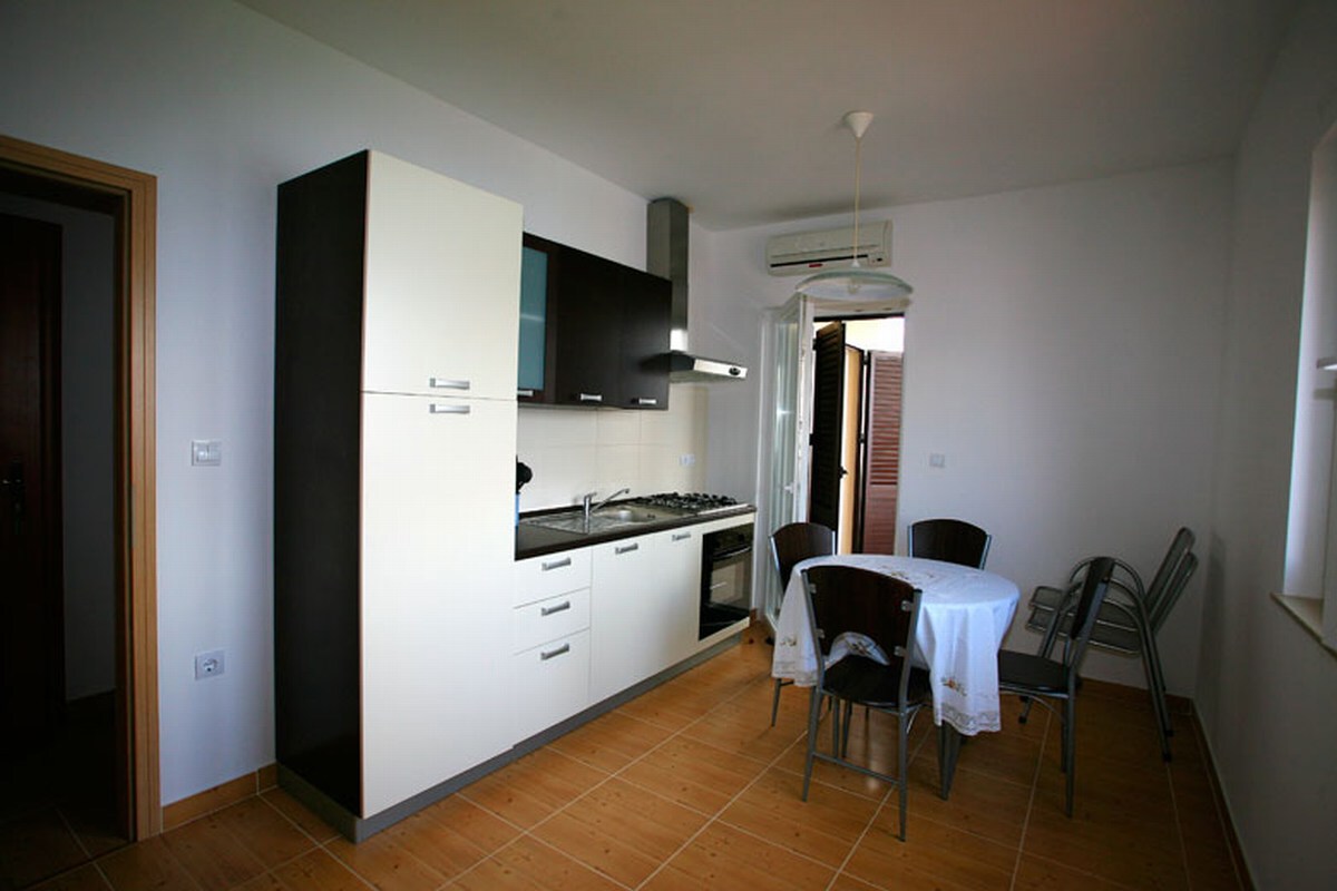 Apartmaji so moderno opremljeni z vsem, kar potrebujete za prijeten dopust, so veliki in udobni. Imajo eno ali dve spalnici, kuhinjo z jedilnico, eno ali dve kopalnici, dnevno sobo, veliko zasenčeno teraso z mizo in stoli ter z razgledom na morje in /ali dvorišče. Na vseh oknih in vratih na teraso so lesena polkna, ki še dodatno ščitijo pred poletno vročino. Internet in wifi delata odlično. V apartmajih so nameščene klimatske naprave ter barvni TV sprejemniki z veliko satelitskimi programi.